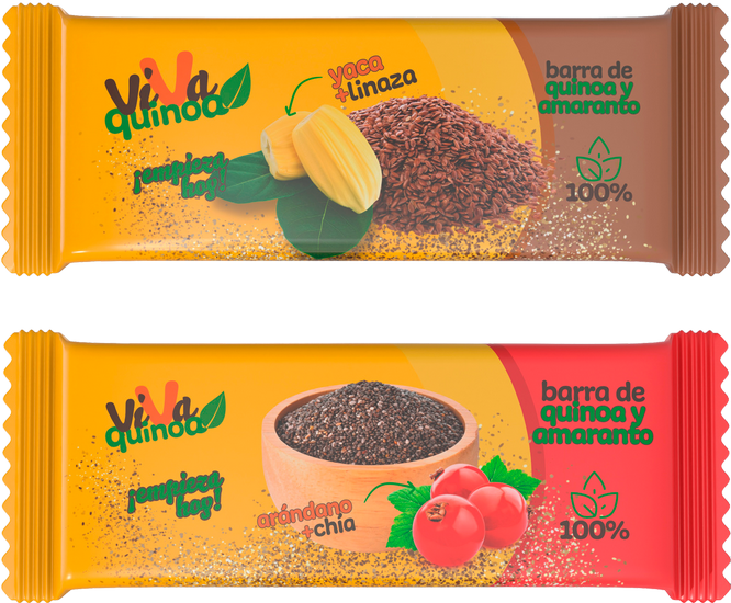 Nuestras barras no solo son 100% naturales, son crujientes y sabrosas, de dos tipos Arándano con Chía y Yaca con Linaza.